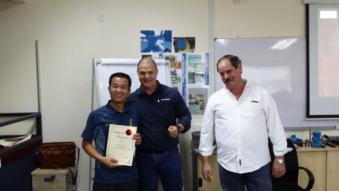 期間,系統學習了石榴石的噴砂技術要領、了解了各種新型的噴砂設備、部件及使用方法,進行了RZG石榴石噴砂磨料同澳大利亞石榴石、印度石榴石的實際噴砂對比,進行了RZG石榴石噴砂磨料同銅渣(也叫銅礦砂)的實際噴砂對比。